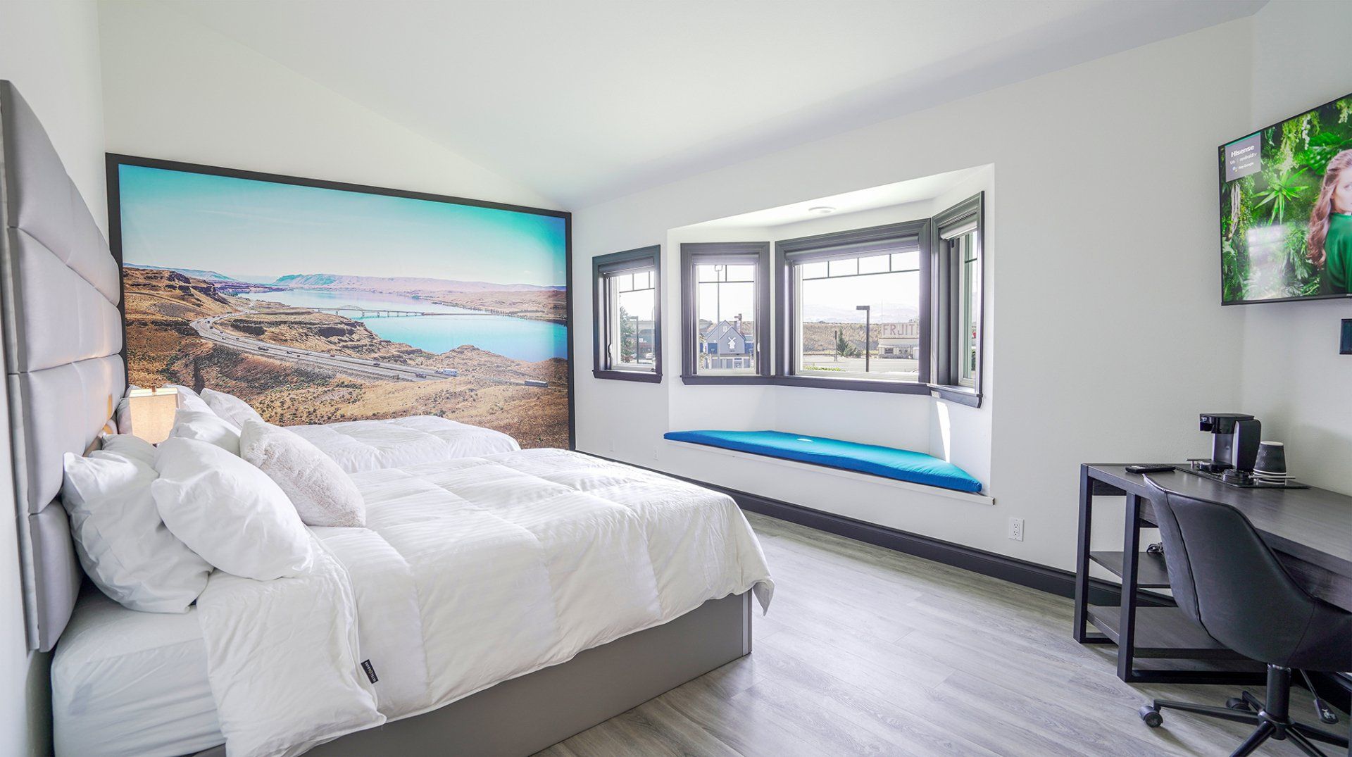 Each room is one of a kind with a personalized mural of local attractions that gives guest a relaxing and memorable stay. We offer premium teas, coffee & boxed water. Each room has individual heating and air conditioning units that will provide year round comfort and climate control.